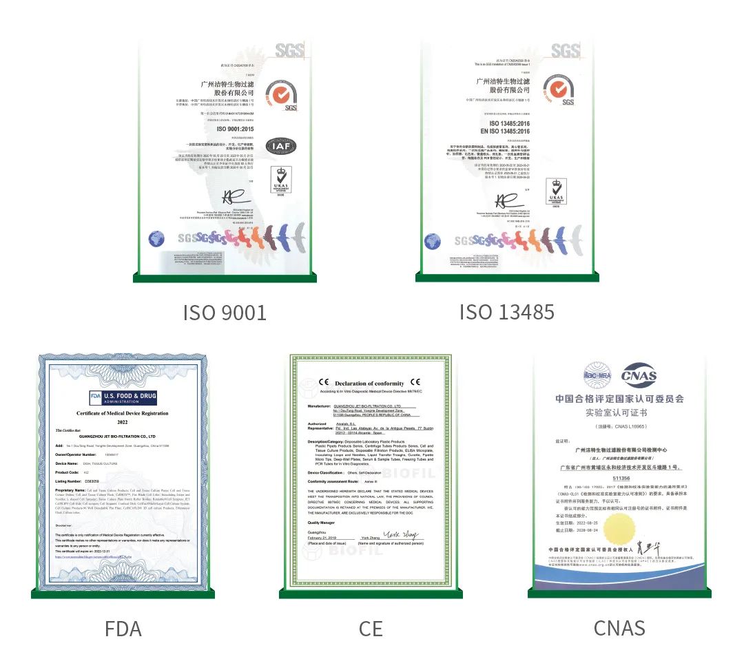 目前,潔特生物CellSafe™ 系列產(chǎn)品主要包括:一次性移液管、一次性離心管、大容量錐形離心瓶、細(xì)胞培養(yǎng)瓶、細(xì)胞培養(yǎng)板、細(xì)胞培養(yǎng)皿、細(xì)胞工廠(chǎng)、三角培養(yǎng)搖瓶、一次性真空式過(guò)濾器等。