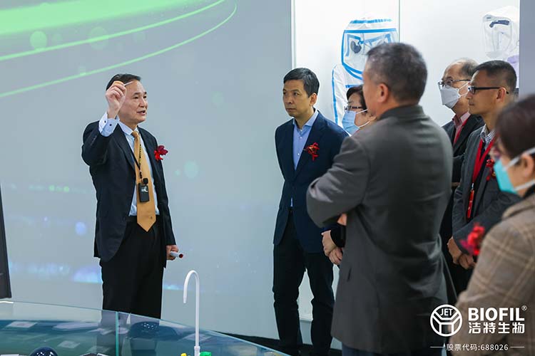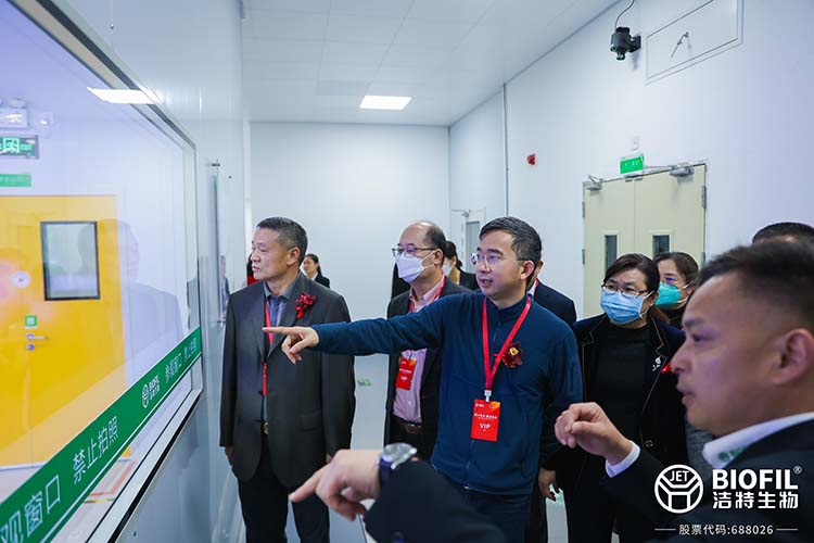 隨后,在潔特生物董事長袁建華,董事、總經理YuanYe James的帶領下,嘉賓們分批參觀潔特產業(yè)園,對潔特生物企業(yè)展廳、智能制造生產車間、辦公區(qū)、潔特檢測中心、潔特孵化器樣板間、會議中心等進行了詳細了解。
