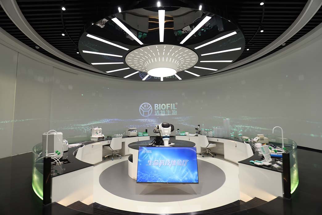 除此之外,潔特生物企業(yè)展廳特設沉浸式生命科學體驗廳,通過模擬實驗室場景,生動地展示了潔特生物產品的關鍵用途,讓參觀來賓零距離地體驗“小瓶罐也有大用處”。