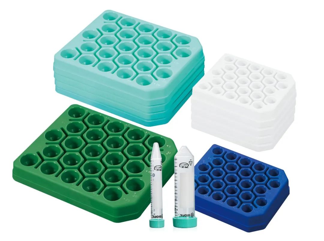 ◆ 15/50mL兩種規(guī)格,均配備25孔位,熒光綠/深綠/藍(lán)/白四種顏色可選