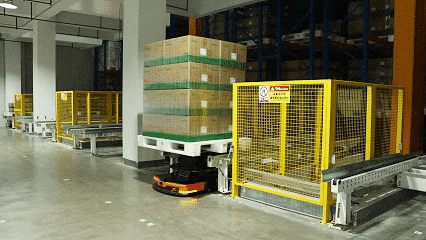 在立庫巨大的鋼貨架之間,有8條達(dá)60米的狹長巷道,每條巷道上,都有一位“擎天柱”——堆垛機,它們代替了傳統(tǒng)的人工和高位叉車,在貨架間快速升降穿梭,精準(zhǔn)地從不同儲位取出或放入貨物。地面上,穿梭車(RGV)和自動導(dǎo)引車(AGV)來回穿梭,承擔(dān)著物料與成品的運輸任務(wù),保障貨物的高效流轉(zhuǎn)。而貨物分揀環(huán)節(jié),則由專業(yè)的機械手精準(zhǔn)完成。