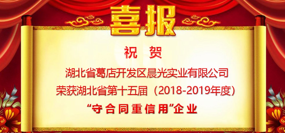 ? 湖北省葛店開發(fā)區(qū)晨光實業(yè)有限公司再獲肯定,榮獲湖北省第十五屆“守合同重信用”企業(yè)。